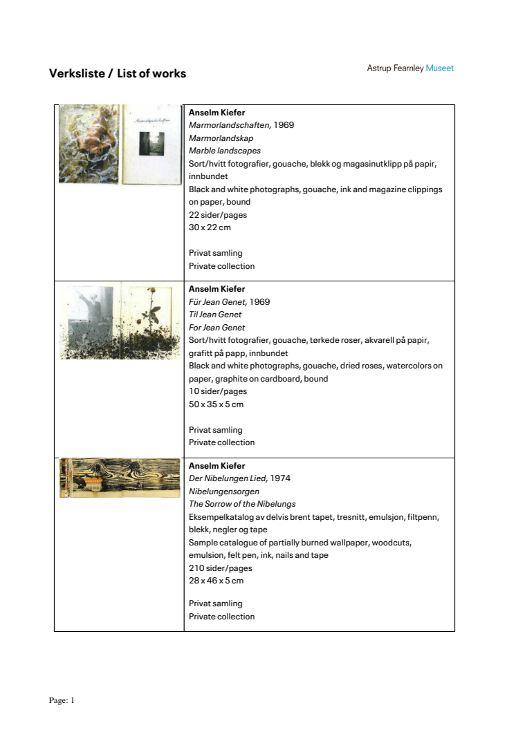 List of Works - Anslem Kiefer – Books and Woodcuts