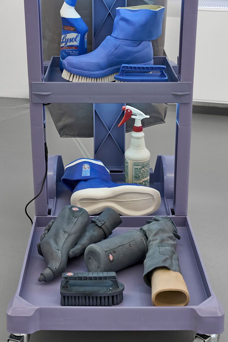The exhibition Antibodies addresses the precariousness of life and work in a predatory neoliberal society where instability and crisis describes not only labour, but our very existence as a species. Kline’s installations, sculptures, and videos are works of critical science-fiction that speculate on the radical possibilities of the near-future—potential dystopian and utopian transformations of politics, economics, technology and biology in the coming years and decades. Kline’s fictional visions of the future are extrapolated from phenomena shaping today’s reality ranging from surveillance and police brutality, to social and economic inequality, and the value and future of human work in an era of increasing automation.